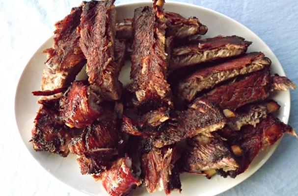 Rub the ribs with the dry rub and place in a zip-lock bag or in a covered bowl in the refrigerator over- night.