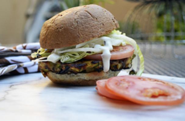 Prepare a grill to medium high heat, oil grate and cook patties for 2 minutes on each side. Serve with your favorite accompaniments and chipotle mayonnaise on a gluten free roll (we used udi's Whole Grain Hamburger Buns).