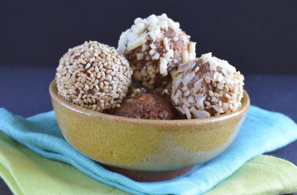 Roll the balls in sesame seeds, coconut, or chopped almonds for additional crunch. Use the listed optional ingredients to determine the amount of sesame seeds, coconut, or almonds you need.