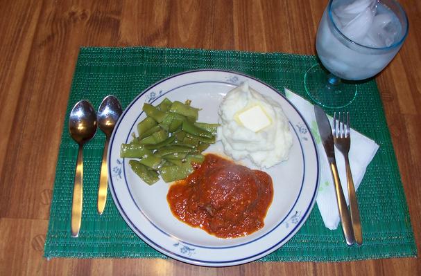 SERVING SUGGESTIONS: MASHED POTATOES AND GREEN BEANS FLAVORED WITH A LITTLE OLIVE OIL, GARLIC & BLACK PEPPER.