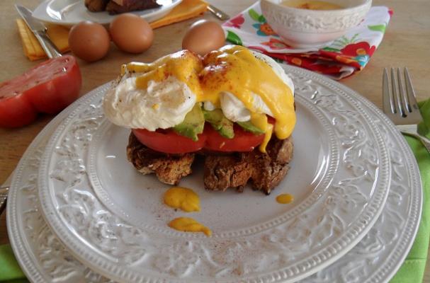 MexiCali Eggs Benedict with Adobo Hollandaise Sauce