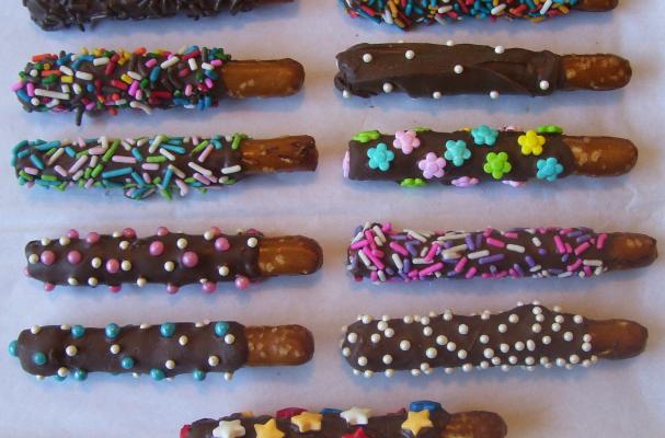 Heat Xocai XoBiotic Squares in the microwave in 10-secoind intervals until melted. Ladle melted XoBiotic Squares over 3/4 of each pretzel rod. Tap or scrape off excess, then roll pretzel in assorted candy sprinkles, crushed cookies, toffee bits, nuts, or mini candies. Dry on a cooling rack until set. Makes 12 rods