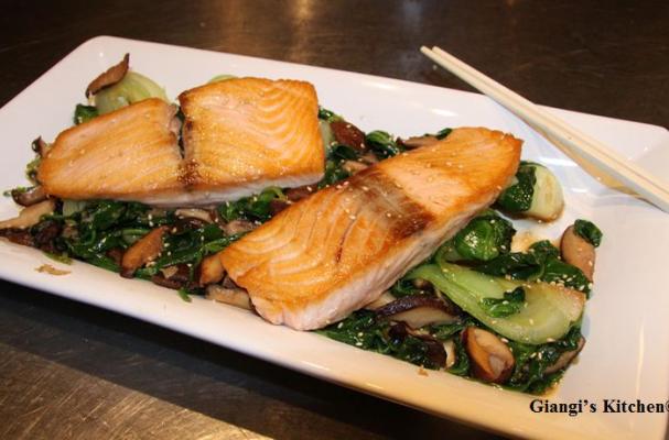 Seared Salmon with Sesame Bok Choy and Spinach