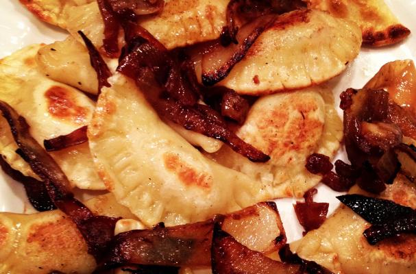 Right before serving I browned the perogies in a few batches. Toss the boiled perogies into a large sauté pan with just a few drizzles of olive oil and lightly brown on each side. Toss with the onions and ENJOY!!!