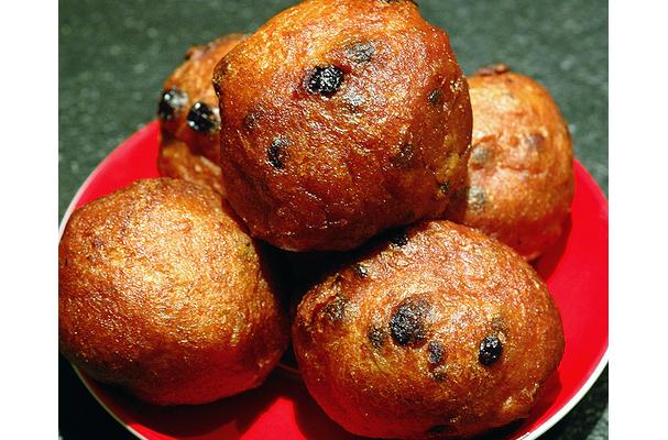 , and add to flour slowly. Add fruit, let rise 1 1/2 hours. Drop in hot