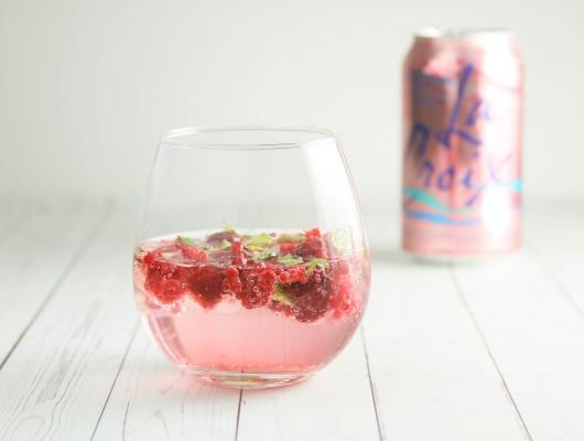 Simply put the raspberries, ice and mint to a glass and top off with the La Croix sparkling water. As simple as that!