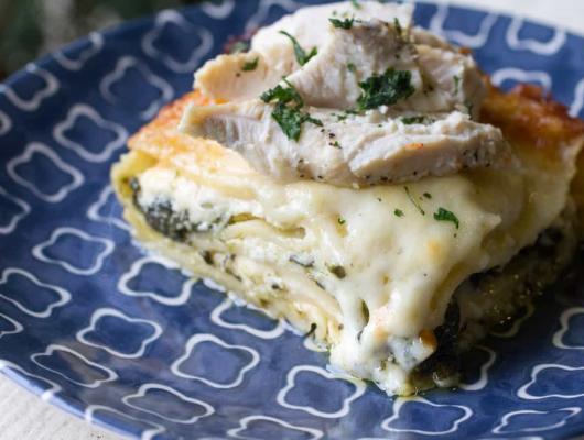 CHICKEN ALFREDO LASAGNA WITH SPINACH