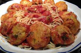 Chicken Meatballs with Red Sauce and Spaghetti
