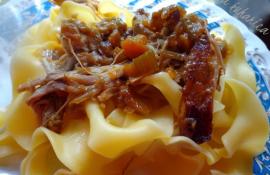 Spaghetti with Peas and Tomato Sauce and Mushrooms