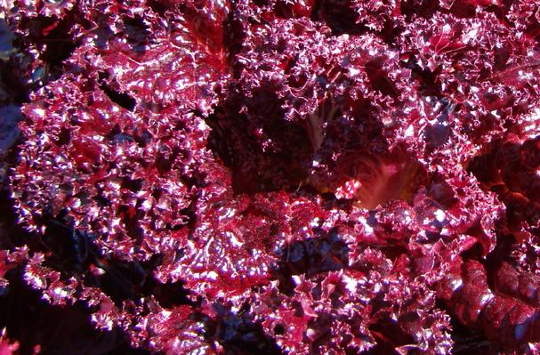 The magenta colored leaves have a light green base and are mild tasting. A delicious, very deeply curled loose leaf variety of lettuce.