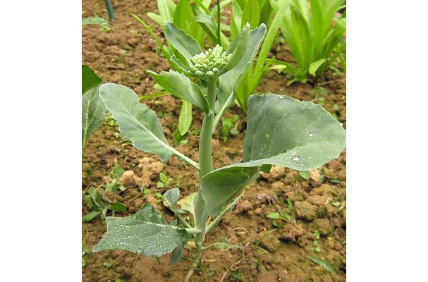 Kai-lan, also known as Chinese broccoli or Chinese kale, is a slightly bitter leaf vegetable featuring thick, flat, glossy blue-green leaves with thick stems and a small number of tiny, almost vestigial flower heads similar to those of broccoli. As the Alboglabra group of Brassica oleracea, kai-lan is of the same species of plant as broccoli and kale. Its flavor is very similar to that of broccoli, but a bit sweeter.