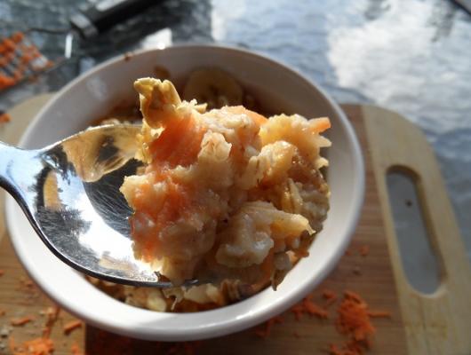 This "carrot cake" baked oatmeal recipe is sweetened with banana and is packed with carrot, walnuts with coconut milk and cinnamon. The flavors are delicious: as they bake together and are accentuated.