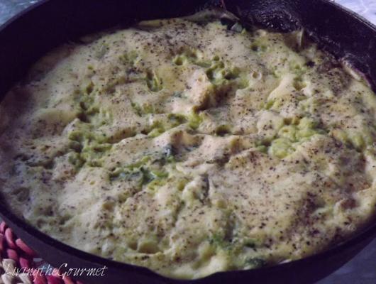 Beat the eggs with a splash of half and half and ¼ cup of grated parmesan cheese.