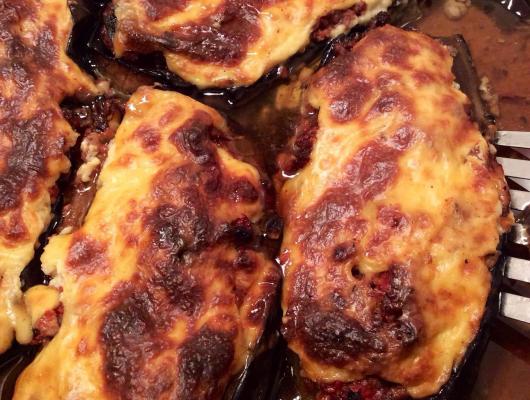 Greek Papoutsakia. Stuffed Eggplant