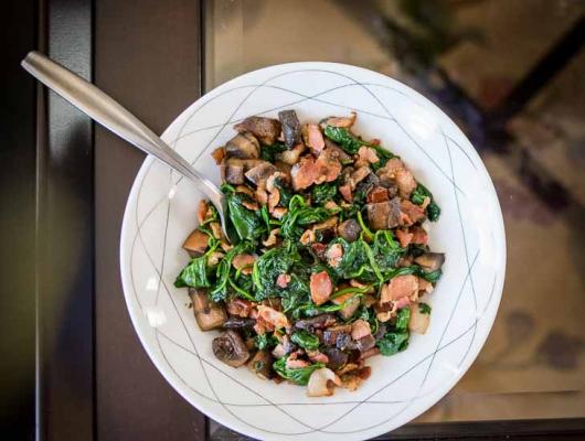 ketosummit, keto, ketospinachmushroombaconsauterecipe