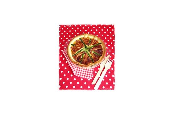 Roll out the pastry crust from the refrigerator and fill with the filling of eggs and leeks.