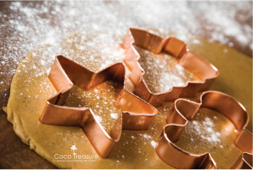 Coconut cookies are always delicious, but many of the recipes yield rustic, dropped style cookies. Not that there’s anything wrong with a rustic cookie, we love them! But sometimes you need something just a little more special. Rolled cookies are both elegant and fun. By using seasonal cookie cutters you can customize this recipe for any occasion–or no occasion at all. This easy version of a rolled cookie won’t have you laboring in the kitchen for hours. But you can speed up the process even more by making the dough one day and refrigerate it overnight to shape and bake the next day.