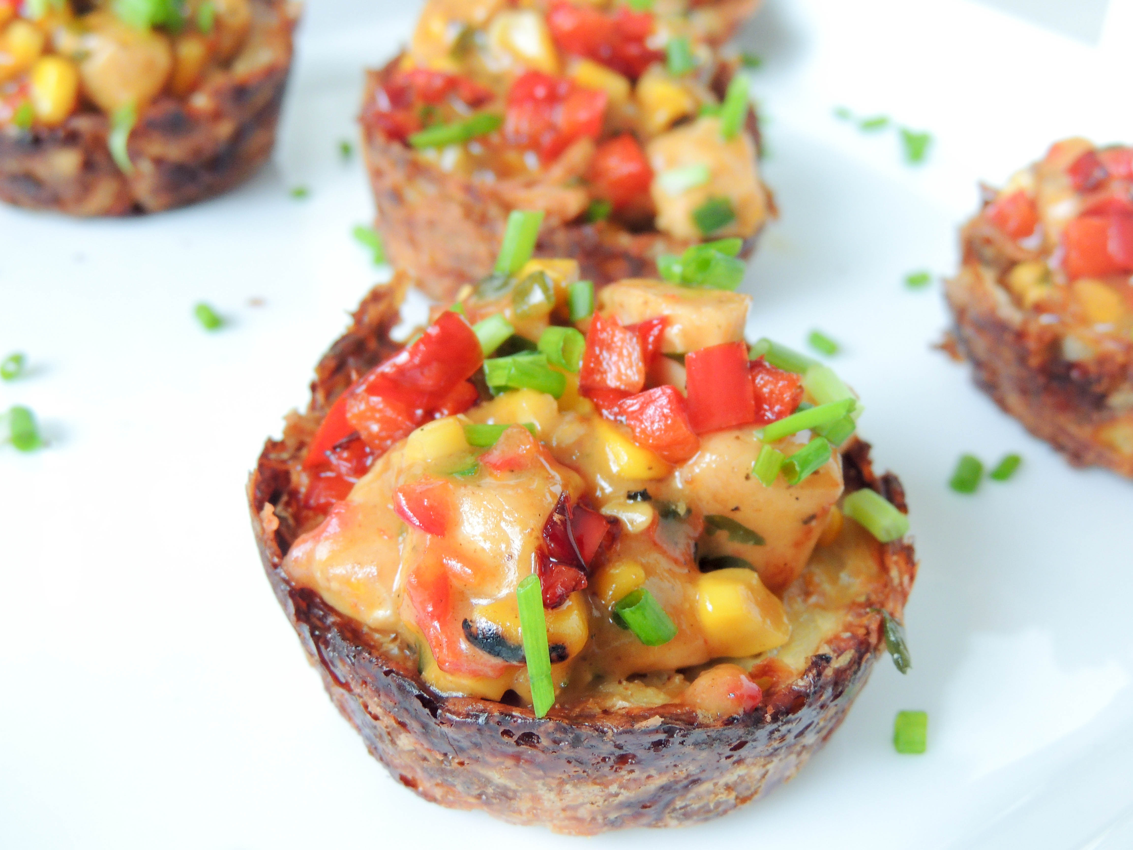 Creamy chicken in potato cheesy baskets