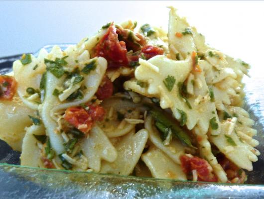 Most pasta salads have heavy dressings or are very dry, this light and zesty pasta salad is bursting with interesting flavours and the pasta is nicely marinated giving the salad fresh and piquant flavour.