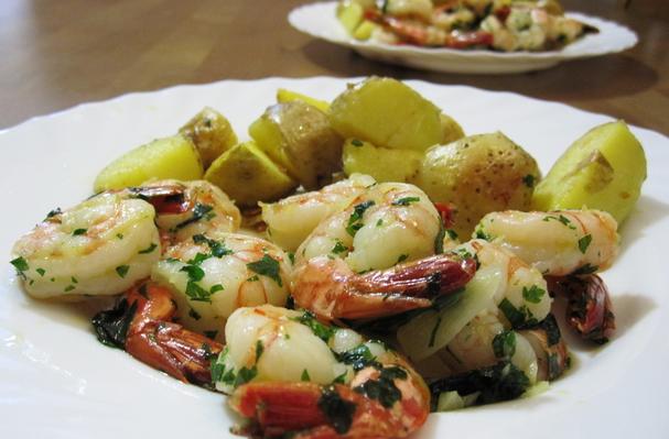 In the same pan put the rest of the garlic and parsley together with shrimps. sautee for 2-3 minutes.