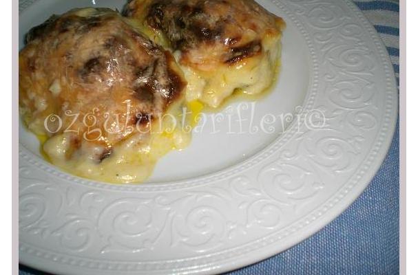 Uzerlerine hazirlamis oldugunuz besamel sosu dokun,ve kasar rendesi serpistirip 200Cº onceden isitilmis firinda uzeri kizarana kadar pisirin.AFİYET OLSUN