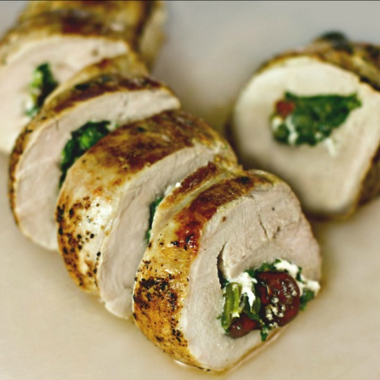 Easy, delicious and healthy roasted Cherry and Goat Cheese Stuffed Pork Loin is overflowing with flavor.