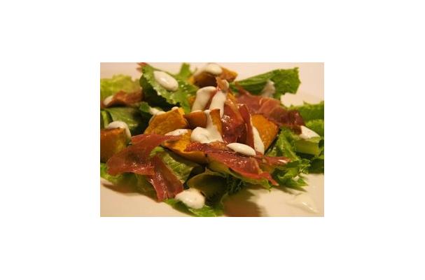The Culinary Chase's Note : I made homemade ranch dressing (use minced fresh garlic in lieu of garlic powder) which is a bit thicker than the commercial brand so you may need to use more white wine vinegar to get it to the consistency you like. While the pumpkin is in the oven, blanch the green beans. This way all your ingredients will be ready to go by the time the pumpkin and prosciutto is cooked. Don't worry if the pumpkin is still warm.