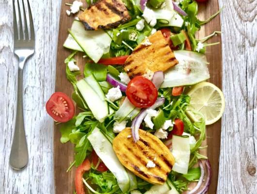 Toss in the olive oil, salt and pepper and a little juice squeezed from the lemon and serve.