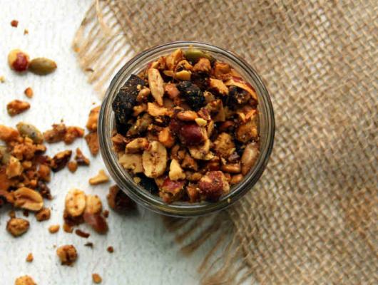DESCRIPTION: Granola needs some sort of sticky binding agent to help the clusters stick together. Many times this is something sweet, like honey or maple syrup. Often, oils are used as well.