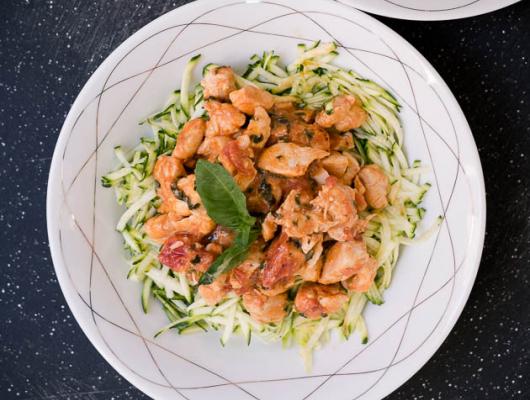 Creamy Tomato Basil Chicken Pasta Recipe [Paleo, Keto, Dairy-Free, Nut-Free]