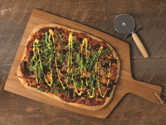 Tip: Place the mayonnaise mixture into a plastic resealable bag and snip off a small portion of the corner. Pipe the mixture over the pizza to get an even drizzle.