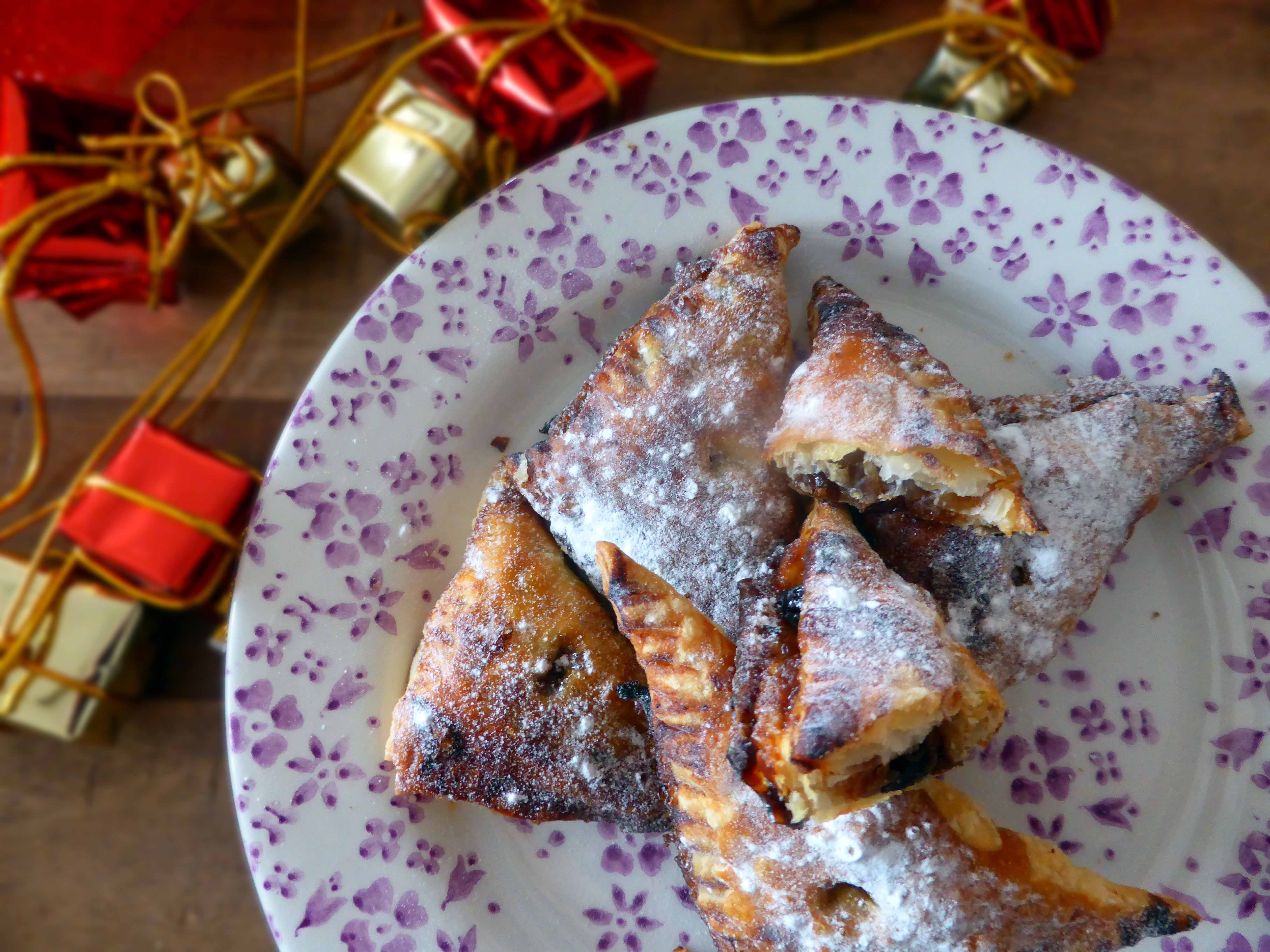 225gr / 8.oz. puff pastry rolled out thinly and cut into squares of 8cm (I like to keep it easy for these mince pie puffs, so I use ready made)