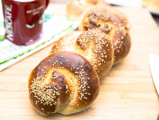 Yeast bread flavored and filled with tahini, made into swirls. Nothing like the aroma of freshly baked bread coming out of the oven, and the bonus here is the sweet tahini. Heavenly!