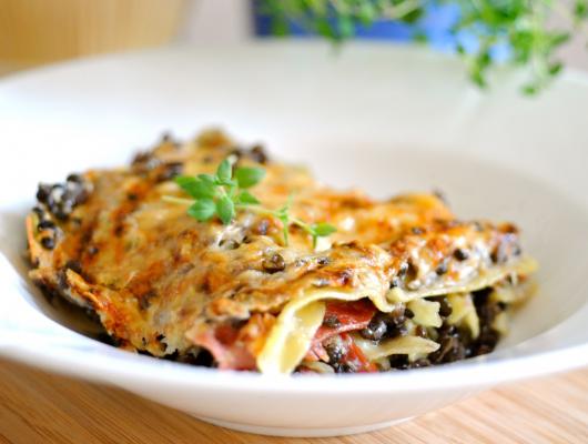 Lasagna with Lentils, Bacon and Cauliflower Béchamel Sauce
