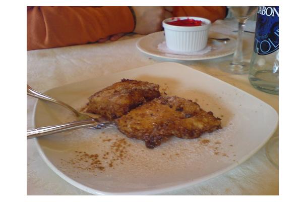 In a heavy 10- to 12-inch skillet, heat the butter and oil over medium heat. When the foam begins to subside, add half of the custard squares and brown for about 2 minutes on each side, turning them over carefully with a large metal spatula. Transfer to a warm serving platter and cook the remaining squares in the same way. Serve, sprinkled with the remaining tablespoon of sugar and the cinnamon.